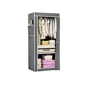 Guarda Roupa Cinza Closet Solteiro Organizador com Capa
