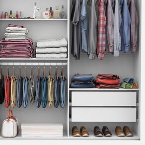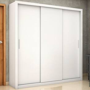 Guarda-roupa Clarice Sem Espelho Branco Carioca Móveis Branco Guarda-roupa Clarice combina 4 gavetas, 4 prateleiras e 3 cabideiros, deixa o produto com uma divisao funcional capaz de proporcionar ao cliente acomodar todas as suas roupas de maneira mais organizada e com maior visibilidade. Nos maleiros cabem certinhos edredons, cobertores, travesseiros, malas, toalhas, bolsas, entre outros. Os tres cabideiros, alem de resistentes, nao envergam com o peso dos moletons, ternos, sobretudos, camisas e acessorios. Prateleiras sao ideias para colocar roupas de cama e de banho, perfumes, kits de maquiagem, caixinhas com acessorios e bolsas menores. As quatro gavetas fixadas sobre corredicas metalicas, sao otimas para guardar blusas dobradas, shorts, malhas e roupas intimas! Caracteristicas: 3 Portas de Correr 4 Gavetas 4 Prateleiras 3 Cabideiros
