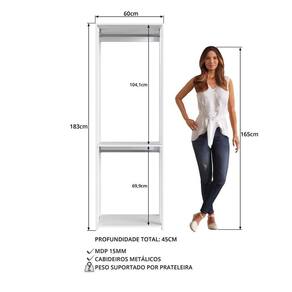 - Modelo: Guarda Roupa Closet 02 Cabideiros 183X60cm PRODDY