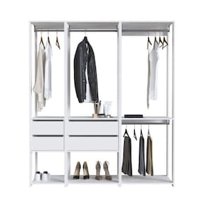 Altura do Conjunto: 183 cm Ambiente: null Ambiente Principal: Quarto Cor: Branco Informação Complementar: 1x Módulo para Closet com Gavetas e Cabideiro 183x45x40cm BrancaLargura: 40 cmAltura: 183 cmPeso: 19,7 kgProfundidade: 45 cmNecessita Montagem: Sim1x Módulo para Closet com Gavetas e Cabideiro 183x45x60cm BrancoLargura: 60 cmAltura: 183 cmPeso: 25,3 kgProfundidade: 45 cmNecessita Montagem: Sim1x Módulo para Closet com Cabideiro e Prateleira 183x45x57cm BrancaLargura: 60 cmAltura: 183 cmPeso: 13,9 kgProfundidade: 45 cmNecessita Montagem: Sim Material Principal: MDP Possui Portas: Não Suporta Até (kg): 30 kg Marca: Prodecor