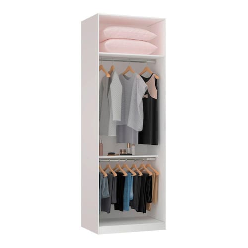 Guarda Roupas sem Portas Modulado para Closet com 2 Cabideiros, 1 Maleiro e 1 Prateleiras com 80,40cm de largura.
