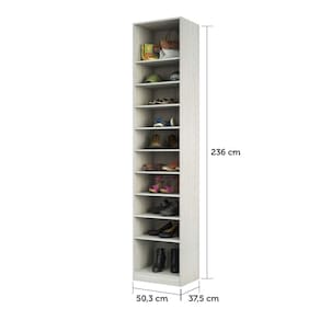Guarda Roupas sem Portas Modulado Sapateira para Closet com 9 Prateleiras. A linha de roupeiros projetados Prime Closet é o sonho de consumo dos projetos de Closets. Produto 100 em MDP 15mm com acabamento impecável e rápida montagem. Conta com 9 prateleiras para auxiliar na organização dos seus calçados ou até mesmo para decorar. E possui fundos embutidos com perfil usinado para melhor acabamento e maior resistência. Esse produto é muito versátil, podendo ser utilizado em diversos cômodos da sua casa, garantindo a você monta-lo de acordo com suas preferência e necessidade. Aproveite essa oportunidade para transformar seu sonho em realidade.