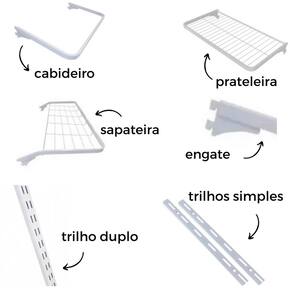 Este closet, possui uma paginação que atende bem casal, solteiro ou teenager. Para quem tem muito o que pendurar e necessita de sapateira esta é a melhor opção em closet. As prateleiras entram em segundo plano em menor quantidade.
