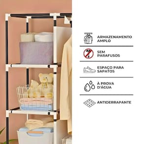 - Design que facilita a organização de roupas, calçados e acessórios.