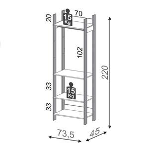 Peso Suportado: 15 Kg por prateleira.