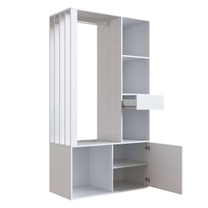 que tal guarda-roupa closet lumo? se você gosta de closets modernos, o guarda-roupa lumo é a pedida certa! com estrutura em mdp e cabideiro em aço, ele tem a resistência necessária para acomodar seus pertences, sejam dobrados ou estendidos. já para dar aquele toque especial à decoração, o móvel tem 1 porta e 1 gaveta com corrediça telescópica, assim une o conceito aberto com a organização de itens que não precisam ficar expostos. daí é só arrumar tudo e aproveitar uma rotina prática e um ambiente bonito ;) Marca: Modern