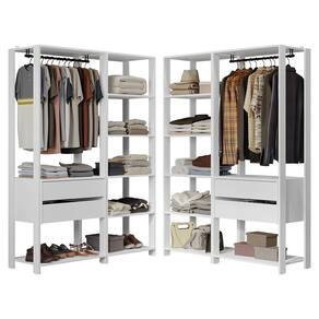 Cada módulo foi projetado para proporcionar um espaço de armazenamento organizado, unindo praticidade e estilo para seu ambiente. Você vai receber dois closets abertos de 59 cm de largura, cada um com cinco prateleiras amplas, perfeitos para roupas dobradas, calçados e acessórios. E mais dois closets abertos de 70 cm de largura, cada um com duas gavetas espaçosas, ideais para itens menores e acessórios, além dos cabideiros.