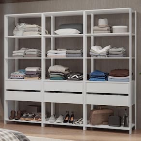- Três Closets abertos de 70 cm com duas gavetas e quatro prateleiras cada