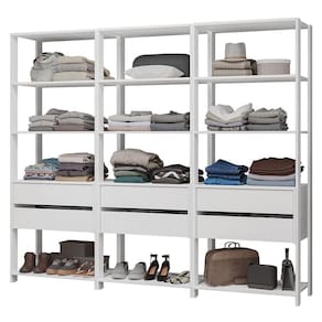 O Closet modulado Valencia une funcionalidade e um design moderno. Composto por três módulos abertos, ele oferece um layout inteligente que garante fácil acesso às roupas e acessórios, mantendo tudo à mão no dia a dia.