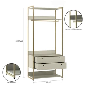 Este é o Conjunto de Closet Ind. Olivar-Módulos 04,03 e 02, produto que mostra uma diversidade de materiais, com metal nas laterais, MDF e MDP de 15 mm. Ele possui prateleiras para acomodar objetos ou roupas, 1 cabideiro de metal e 1 cabideiro de alumínio, gavetas e portas com corrediças e dobradiças metálicas, tudo com design de uma pegada industrial para quem gosta do estilo mais urbano e contemporâneo onde você personaliza seu ambiente deixando-o exclusivo. Acabamento da Prateleira: Pintura UV Escala de Brilho da Prateleira: Semi-Brilho Possui Cabideiros: 02 Acabamento da Gaveta: Pintura UV Escala de Brilho da Gaveta: Semi-Brilho Material do Puxador da Gaveta: MDF Possui Organizador de Gaveta: Não Acabamento da Porta: Pintura UV Escala de Brilho da Porta: Semi-Brilho Material do Puxador da Porta: MDF Altura dos Pés: 4.5 Ambiente Principal: Quarto Complexidade da Montagem: Baixa: pode ser montado por uma pessoa sozinha Cor: Off White Cor do Produto: Off White Cor Interna: Off White Escala de Brilho: Semi-Brilho Gaveta com Chave: Não Guarda-Roupa Suporta Até (kg): 80 Itens Inclusos: 3 Módulo Closet, Kit Ferragens e Manual de Montagem Linha ou Coleção: Linha Manual de Montagem e Instalação: https://cdn2.madeiramadeira.com.br/atributo/olivar-moveis/1273309-manual-closet-ind-olivar-conj-04-03-02.pdf Material da Gaveta: MDF/MDP Material da Porta: MDF Material da Prateleira: MDP Material dos Pés: Plástico Material Principal: MDF/MDP Necessita Montagem: Sim Origem do Produto: Nacional Peso: 115,8 kg Peso Máximo por Gaveta: 2 Peso Máximo por Prateleira: 5 Possui Calceiros: Não Possui Espaço para Vestidos Longos: Sim Possui Espelho: Não Possui Espelho Interno: Não Possui Ganchos: Não Possui iluminação: Não Possui Painel de TV: Não Possui Pés: 12 Possui Portas: 01 Possui Prateleiras: 11 Possui Sapateira: Sim Recomendações de Uso, Manutenção e Limpeza: Pano úmido. Não aplicar lustra móveis. Sapatas Niveladoras: Sim Sistema de Montagem: Parafusos e Minifix. Tipo de Corrediça da Gaveta: Metálica Simples Tipo de Dobradiça/Corrediça da Porta: Metálica Tipo de Gaveta: Externa Tipo de Guarda-Roupa: Closet Tipo de Puxador da Gaveta: Embutido Tipo de Puxador da Porta: Embutido