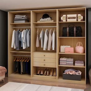 que tal o guarda-roupa closet modulado infinity? do tipo closet, que dá modernidade e leveza para a decoração, o guarda-roupa infinity é a opção ideal para deixar seu dormitório mais organizado e levar pde à sua rotina. com 3 gavetas e 1 cabideiro, ele te permite deixar suas peças de roupa sempre organizadas para quando quiser usar - camisetas, calças, casacos, bermudas, enfim, tudo ganha um espaço especial. graças à coloração moderna e ao acabamento amadeirado, além de ganhar na organização, seu quarto também recebe um charme extra no visual. Marca: Modern