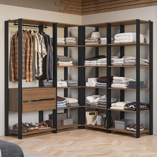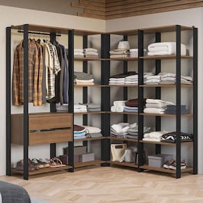 Com uma estrutura aberta, oferece fácil acesso aos seus pertences no dia a dia. Nesta versão, é composto por quatro peças independentes, proporcionando com dois cabideiros metálicos, diversas prateleiras e duas gavetas espaçosas, proporcionando um amplo espaço de armazenamento.