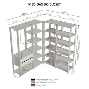 O Guarda-Roupa Closet Modulado Valencia vai transformar o seu ambiente e otimizar a organização do seu quarto.