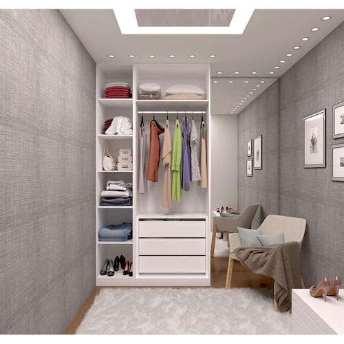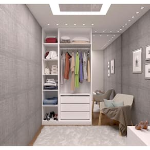 Guarda Roupa Closet sem Portas 2 Peças, 3 Gavetas, 1 Cabideiro Branco Prime Luciane Móveis