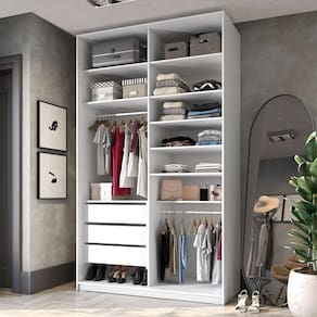 que tal o guarda-roupa closet sion? em busca de um guarda-roupa que combine modernidade e sofisticação para o seu quarto? apresentamos o guarda-roupa closet sion. seguindo o conceito de closet, este móvel dispensa portas, proporcionando um visual contemporâneo e elegante ao ambiente. com prateleiras espaçosas, gavetas funcionais e bom cabideiro, todas as suas roupas encontrarão o espaço adequado para serem organizadas de maneira prática e charmosa. além de otimizar o armazenamento, ele conta com estrutura estável e acabamento amínico em baixa pressão, garantindo ainda mais resistência e durabilidade. Marca: Modern