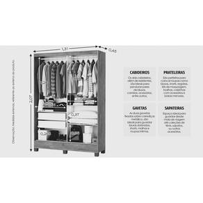 Particularidades do Guarda Roupa.: Altura.: 207 cm Largura.: 131cm Profundidade.: 45 cm