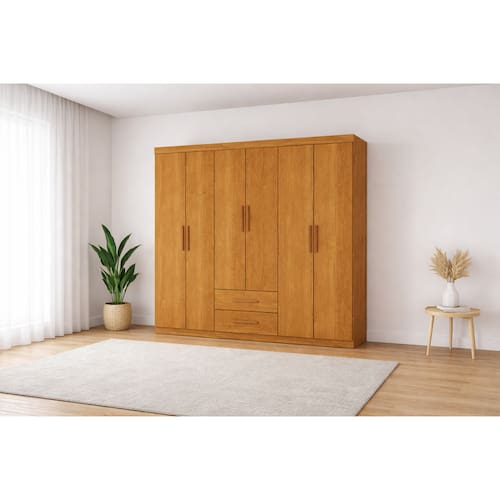 O Guarda-Roupa de Casal com 6 portas de abrir foi desenvolvido para quem precisa de espaço, praticidade e elegância em um só móvel. Sua estrutura interna é ampla e bem distribuída, permitindo uma organização eficiente de roupas, calçados e acessórios. O design moderno e funcional combina facilmente com diversos estilos de decoração, tornando-se a peça ideal para compor quartos de casal com conforto e organização. As portas possuem excelente acabamento e bom desempenho na abertura e fechamento, oferecendo mais segurança e durabilidade no uso diário.
