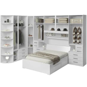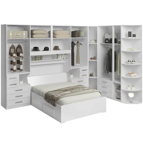 * Colchão e itens de decoração não estão inclusos. Imagens meramente ilustrativas. Dormitório de casal sem cama embutida, versão mais completa. O dormitório é na verdade um conjunto de módulos. Você pode mudar a composição trocando ou adicionando módulos conforme seu gosto e seu espaço.