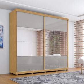 Feito em MDF 4 gavetas com corrediças telescópicas, 2 Portas deslizantes, 6 prateleiras e 4 cabideiro.