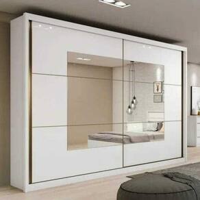 Guarda Roupa Com Espelho 2 Portas E 6 Gavetas Lopas - Branco