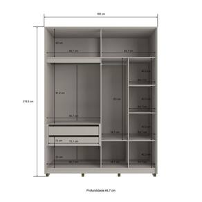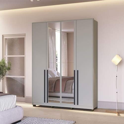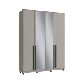 Com 4 portas amplas e 2 gavetas espaçosas com corrediças telescópicas, oferece excelente capacidade interna para roupas dobradas, sapatos e objetos pessoais. Os cabideiros em alumínio garantem resistência para peças maiores, enquanto os puxadores em MDF revestido agregam sofisticação ao visual. Para maior durabilidade, conta ainda com pés antiumidade que protegem o móvel no uso diário.