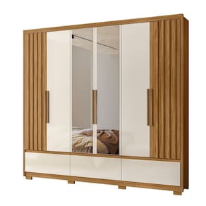 GUARDA ROUPA COM 6 PORTAS DE GIRO - 3 GAVETÕES EXTERNO - 2 GAVETAS INTERNAS - 2 ESPELHOS JÁ FIXADOS NAS PORTAS - RIPADO EM MDF NAS PORTAS COM MONTAGEM OPCIONAL - TODAS AS PRATELEIRAS EM 15MM - CORREDIÇAS TELESCÓPICAS - PUXADORES EM MDF - PÉS EM PVC - CABIDEIROS EM ALUMÍNIO - MOLDURAS LATERAIS EM 25MM - DOBRADIÇAS DE 35MM COM AMORTECEDOR - GAVETAS COM PUXADORES USINADOS EM 45 GRAUS Acabamento da Prateleira: Pintura UV Escala de Brilho da Prateleira: Semi-Brilho Possui Cabideiros: Sim Acabamento da Gaveta: Pintura UV Escala de Brilho da Gaveta: Semi-Brilho Possui Organizador de Gaveta: Não Acabamento da Porta: Pintura UV Escala de Brilho da Porta: Brilhante Material do Puxador da Porta: MDF Acabamento dos Pés: Cristal Altura do Espelho: 176 cm Altura dos Pés: 5 cm Altura Máxima dos Pés: 5.0000 Ambiente Principal: Quarto codigo_ean: 7909903576717 Complexidade da Montagem: Alta: deve ser montado por um montador especializado Cor: Freijó/Off White Cor do Produto: Freijó/Off White Cor do Puxador: Marrom Cor Interna: Freijó Escala de Brilho: Fosco Espessura da Estrutura (mm): 12 mm Espessura das Portas (mm): 15 mm Espessura das Prateleiras (mm): 15 mm Espessura do Espelho: 3 mm Espessura do Fundo (mm): 2,5 mm Espessura do Fundo das Gavetas (mm): 2,5 mm Formato do Espelho: Retangular Gaveta com Chave: Não Guarda-Roupa Suporta Até (kg): 96 kg Itens Inclusos: 01 Guarda-Roupa, Kit Ferragens e Manual de Montagem Largura do Espelho: 38 cm Linha ou Coleção: LINHA INSPIRAÇÃO Manual de Montagem e Instalação: https://product-hub-prd.madeiramadeira.com.br/880017/documents/14fd9631-d479-4e2a-8b32-776394012798200330esquemademontagem033.pdf Marca: Moval Material da Gaveta: MDP Material da Porta: MDP Material da Prateleira: MDP Material dos Pés: PVC Material Principal: MDP modular: Não Montagem Flex: NÃO Necessita Montagem: Sim Nicho com Cabideiro: Sim Origem do Produto: Nacional Peso: 190,88 kg Peso Máximo por Gaveta: 8 kg Peso Máximo por Prateleira: 6 kg Porta Janelada: Não Possui Calceiros: Não Possui Capelinha: Não Possui Espaço para Vestidos Longos: Sim Possui Espelho: Sim Possui Espelho Interno: Não Possui Ganchos: Não Possui iluminação: Não Possui Painel de TV: Não Possui Penteadeira: Não Possui Pés: 08 Possui Portas: Sim Possui Prateleiras: Sim Possui Sapateira: Não Produto Montado: Sim Quantidade de Cabideiros: 03 Cabideiros Quantidade de Espelho: 02 Espelhos com Tamanhos Iguais Quantidade de Gavetas: 05 Gavetas Quantidade de Portas com Espelhos: 2 Portas com Espelho Quantidade de Prateleiras: 11 Prateleiras Recomendações de Uso, Manutenção e Limpeza: A montagem deve ser realizada conforme manual de montagem - realizada por um técnico - na limpeza utilizar pano macio e seco - não utilizar produtos abrasivos Sapatas Niveladoras: Não Sistema de Montagem: Girofix - cavilhas e parafusos Suporta Até (kg): 96 kg Tipo de Corrediça da Gaveta: Metálica Telescópica Tipo de Dobradiça/Corrediça da Porta: Metálica Tipo de Fixação do Espelho: Silicone Tipo de Gaveta: Interna e Externa Tipo de Guarda-Roupa: Casal Tipo de Puxador da Gaveta: Não Possui Tipo de Puxador da Porta: Externo