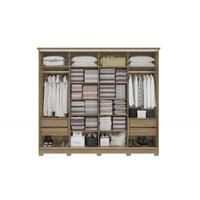 Deixe seu quarto mais lindo, moderno e organizado com o Roupeiro CB03N565 da Kappesberg. Com um design super atual e uma ótima divisão de espaço, esse será o modelo perfeito para você. Com quatro portas de correr e quatro gavetas, ele possui o tamanho perfeito para um quarto de casal. São 2,34m de altura, 2,65m de largura e 58cm de profundidade, todo produzido em chapa de 15mm, o que garante mais robustez, firmeza e qualidade ao seu roupeiro. Produzido em MDP, ele conta com ótimas divisões internas entre cabideiros, prateleiras e quatro gavetas, ideal para organizar roupas e calçados. Seu diferencial fica por conta das portas laterais, que são reversíveis, podendo optar entre as cores Macadâmia ou Verde na hora de montar o seu móvel, deixando-o do seu jeito.Com pés, seus espelhos nas duas portas centrais, moldura e puxadores em madeira garantem ainda mais estilo e praticidade. Acabamento da Prateleira: Pintura UV Escala de Brilho da Prateleira: Fosco Possui Cabideiros: 02 Acabamento da Gaveta: Pintura UV Escala de Brilho da Gaveta: Fosco Possui Organizador de Gaveta: Não Acabamento da Porta: Pintura UV Escala de Brilho da Porta: Fosco Material do Puxador da Porta: Metal Acabamento dos Pés: Pintura Altura dos Pés: 5 Ambiente Principal: Quarto Complexidade da Montagem: Média: pode ser montado por mais de uma pessoa e/ou necessite de maior conhecimento para montagem Cor: Nogueira/Macadamia Cor do Produto: Nogueira/Macadamia Cor Interna: Nogueira Escala de Brilho: Fosco Espessura do Espelho: mm Gaveta com Chave: Não Guarda-Roupa Suporta Até (kg): 100 Itens Inclusos: 1 Guarda Roupa, Kit Ferragens e Manual de Montagem Manual de Montagem e Instalação: https://cdn2.madeiramadeira.com.br/atributo/moveis-kappesberg-matriz-madeira/1225396-n565.pdf Material da Gaveta: MDP Material da Porta: MDP Material da Prateleira: MDP Material dos Pés: Polipropileno Material Principal: MDP Necessita Montagem: Sim Origem do Produto: Nacional Peso: 208.5733 Peso Máximo por Gaveta: 6 Peso Máximo por Prateleira: 7 Possui Calceiros: Não Possui Espelho: Não Possui Pés: 10 Possui Portas: 04 Possui Prateleiras: 10 Recomendações de Uso, Manutenção e Limpeza: Limpeza deverá ser realizada com pano limpo e ligeiramente umedecido em água ou álcool no MDP (recomendamos álcool etílico hidratado). Logo após, seque a superfície com um pano seco e macio. Mantenha o ambiente limpo e arejado. Sapatas Niveladoras: Não Sistema de Montagem: Parafuso Philips e Minifix Tipo de Corrediça da Gaveta: Metálica Telescópica Tipo de Dobradiça/Corrediça da Porta: Metálica Tipo de Gaveta: Interna Tipo de Guarda-Roupa: Casal Tipo de Puxador da Gaveta: Não Possui Tipo de Puxador da Porta: Externo
