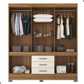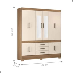Produzido em MDP. Acompanha cabideiros em alumínio, puxadores na cor bronze, pés em PVC e espelhos