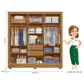 O Guarda-Roupa Bahamas é a escolha ideal para quem busca uma organização perfeita, pois possui divisórias ele/ela. Com 3 portas deslizantes, equipadas com trilhos de alumínio, oferece um design funcional e moderno. As portas laterais têm molduras de 25mm, enquanto a porta central conta com um espelho e sistema antiempeno metálico, garantindo durabilidade. Conta também com 2 gavetas com corrediças metálicas para um deslizamento suave e cabideiros em alumínio. Os puxadores em MDF proporcionam um toque elegante. É fabricado em MDP e com acabamento em impressão UV, garantindo qualidade e durabilidade.