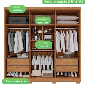 Guarda Roupa Com Ripado 6 Portas 4 Gavetas Sevilha Prime 100 Cinamomo/off/cinamomo Guarda Roupa Ripado Casal 6 Portas 4 Gavetas Sevilha Prime IMOP Moveis Durabilidade e a palavra para o Guarda-Roupa Sevilha Prime 6 portas, desenvolvido em material ecologicamente correto 100 MDF, o produto possui 6 portas de abrir. A parte interna conta com cabideiros e calceiros metalicos, Nicho central com varias prateleiras, gavetas com corredicas telescopicas que proporcional abertura total, traz requinte e harmonia para o ambiente, que ficara ainda mais aconchegante.
