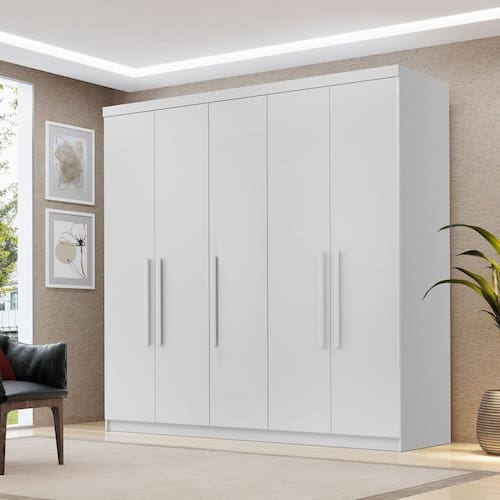 Os puxadores da mesma cor do produto com uma combinação harmonioso, os cabideiros de alumínio são com maior durabilidade, as gavetas com corrediças telescópicas e fundo reforçado garantindo um deslizamento suave e maior segurança no uso; as portas possuem dobradiças slow motion que proporcionam um fechamento suave e silencioso. Acabamento da Prateleira: Pintura UV Escala de Brilho da Prateleira: Fosco Possui Cabideiros: Sim Acabamento da Gaveta: Pintura UV Possui Organizador de Gaveta: Não Acabamento da Porta: Pintura UV Escala de Brilho da Porta: Fosco Material do Puxador da Porta: MDF Altura do Espelho: 160 cm Ambiente Principal: Quarto codigo_ean: 7900288070555 Complexidade da Montagem: Média: pode ser montado por mais de uma pessoa e/ou necessite de maior conhecimento para montagem Cor: Branco Cor do Produto: Branco Cor do Puxador: Branco Escala de Brilho: Fosco Espessura da Estrutura (mm): 15 mm Espessura das Portas (mm): 15 mm Espessura das Prateleiras (mm): 15 mm Espessura do Espelho: 3 mm Espessura do Fundo (mm): 3 mm Espessura do Fundo das Gavetas (mm): 3 mm Formato do Espelho: Retangular Gaveta com Chave: Não Guarda-Roupa Suporta Até (kg): 120 kg Informações Complementares: prateleiras centrais opcionais para utilização como sapateria ou multiuso Itens Inclusos: 1 Guarda-Roupa, Kit Ferragens e Manual de Montagem Largura do Espelho: 30 cm Linha ou Coleção: Guarda Roupa Glamuor Manual de Montagem e Instalação: https://product-hub-prd.madeiramadeira.com.br/977230/documents/14efebd3-1931-4c2c-b5c5-137c94b70ca12694775412717398797130414.pdf Marca: Móveis Fazzio Material da Gaveta: MDF Material da Porta: MDF Material da Prateleira: MDF Material Principal: MDF modular: Não Necessita Montagem: Sim Origem do Produto: Nacional Peso: 198 kg Peso Máximo por Gaveta: 6 kg Peso Máximo por Prateleira: 6 kg Porta Janelada: Não Possui Capelinha: Não Possui Espaço para Vestidos Longos: Sim Possui Espelho: Sim Possui Espelho Interno: Não Possui Ganchos: Não Possui iluminação: Não Possui Painel de TV: Não Possui Penteadeira: Não Possui Pés: Não Possui Portas: Sim Possui Prateleiras: Sim Possui Sapateira: Sim Produto Montado: Sim Quantidade de Cabideiros: 02 Cabideiros Quantidade de Espelho: 01 Quantidade de Gavetas: 03 Gavetas Quantidade de Prateleiras: 09 Prateleiras Recomendações de Uso, Manutenção e Limpeza: Usar pano levemente umedecido com agua Sistema de Montagem: Parafusos atarraxantes, sistema minifix e cavilhas. Suporta Até (kg): 120 kg Tipo de Corrediça da Gaveta: Metálica Telescópica Tipo de Dobradiça/Corrediça da Porta: Telescópica Tipo de Fixação do Espelho: Silicone Tipo de Gaveta: Interna Tipo de Guarda-Roupa: Casal Tipo de Puxador da Gaveta: Não Possui Tipo de Puxador da Porta: Externo Marca: Móveis Fazzio