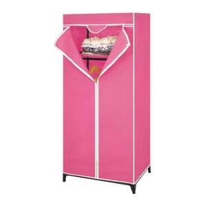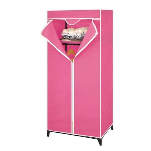 Guarda Roupa Com Ziper Cabideiro Portatil Arara Organizador Prateleira Multiuso Praia Camping Rosa