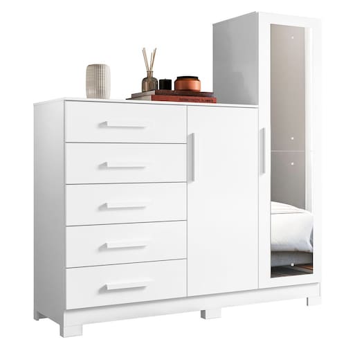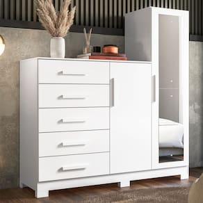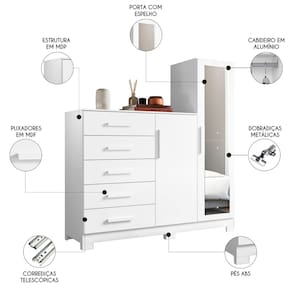 O Guarda Roupa Cômoda com Espelho 158cm Suiça A02 Branco, da Mpozenato é a opção perfeita para quem busca organização e praticidade em um único móvel.