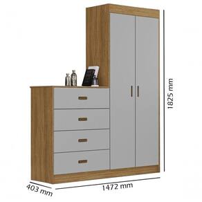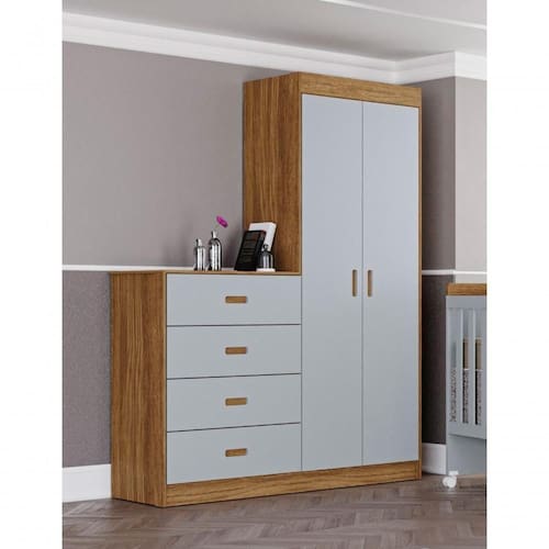 Produto: Roupeiro Comoda New Bebe | Material: MDF | Cor: Cinza/Carvalho | Cômodo Indicado: Quarto Infantil | Possui Puxadores: sim | Material dos Puxadores: Polipropileno | Possui Gavetas: Sim | Quantidade de Gavetas: 4 | Posui Portas: Sim | Quantidade de Portas: 2 | Garantia do Fabricante: 3 Meses | Modelo: New Bebe | Peso do Produto (Kg): 60.75 | Instruções/Cuidados: Evite contato com líquidos. Nada de lavar os móveis. Móveis não gostam de umidade. Não deixe o móvel exposto ao sol. Os acessórios também precisam de limpeza. | Produto precisa de Montagem?: Sim, a montagem é simples mas sugerimos a contratação de algum profissional experiente de sua preferência | Estado de Origem: PR | Conteúdo da Embalagem: Roupeiro Comodo New Bebe | Altura do Produto (cm): 183Cm | Largura do Produto (cm): 145cm | Comprimento do Produto (cm): 42cm | Descrição do Tamanho: 183x145x42 cm | Pintura: Superficie UV/ Borda PU | Possui Corrediças: Sim | Tipo de Corrediças: Telescópicas | Tipo de Guarda Roupa: Infantil | Volumes: 2 | Possui Prateleiras: Sim | Quantidade de Preteleiras: 2 | Necessita Montagem: Sim | Altura do Produto com Embalagem (cm): 183 | Largura Produto Com Embalagem (cm): 40 | Comprimento Produto Com Embalagem (cm): 189 | Peso Produto Com Embalagem (Kg): 62 | Material para Filtro: MDF | Tonalidade: Cinza