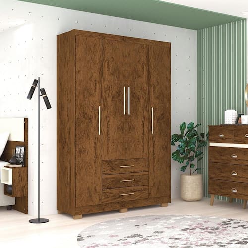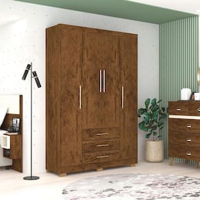 Dispõe três gavetas com profundidade excelente para acomodar todas as suas roupas, contando com quatro prateleiras perfeitas para guardar sapatos, Cobertores