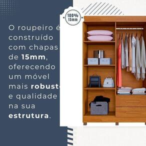 O Guarda Roupa Copacabana quatro portas e o movel ideal para organizar seu quarto e deixa-lo ainda mais pratico! Com design classico, ele possui elementos que dao a ele um toque de modernidade. O design clean deixa o ambiente mais aconchegante. A parte interna ampla possui varias prateleiras, possibilitando o armazenamento de cobertores, travesseiros e outros acessorios. Conta com cabideiro em aluminio, o que garante um suporte para maior peso. As gavetas sao externas oferecendo mais espaco e comodidade para organizar as coisas. E a solucao para pequenos espacos e perfeito para deixar o quarto mais pratico e bonito!