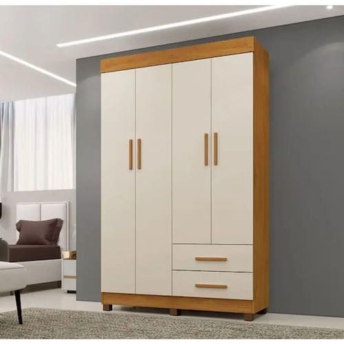 ROUPEIRO COPACABANA É PRODUZIDO EM CHAPA DE 15 MM QUE GARANTE ROBUSTES E MAIOR VIDA ÚTIL , CONTEM 4 PORTAS, 4 PRATELEIRAS, 2 GAVETAS COM CORREDIÇAS TELESCOPICA, CABIDEIRO EM ALUMINIO,ESPAÇO PARA LONGOS, PES INCLUSO NO PRODUTO E PUXADORES MODERNOS , ÓTIMO CUSTO ões do produto montado:Altura: 210 cmLargura: 114 cmProfundidade: 43 cm