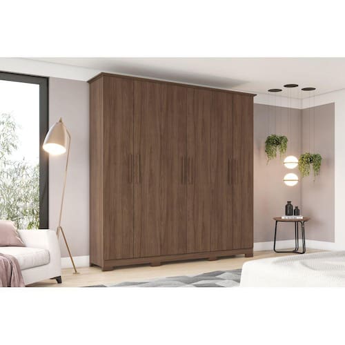 O guarda-roupas é um dos móveis mais importantes e funcionais em qualquer quarto. Ele não só é responsável por organizar nossas roupas e acessórios, mas também pode adicionar estilo e personalidade ao ambiente. Se você está procurando por um guarda-roupas que seja espaçoso, prático e elegante, então a linha Cover é perfeita para você. Com suas 6 portas e 3 gavetas, este guarda-roupas oferece um amplo espaço de armazenamento para todas as suas roupas, sapatos e acessórios. Além disso, o design moderno e sofisticado da linha Cover combina perfeitamente com qualquer decoração de quarto, adicionando um toque de classe e elegância ao seu ambiente. Se você valoriza a praticidade e o estilo, não há opção melhor do que o guarda-roupas 6 portas, 3 gavetas da linha Cover. Diferenciais; Gavetas com corrediças metálicas Puxadores em MDF revestidos Cabideiros e calceiro em alumínio Chapéu com acabamento soft Pés em ABS Medidas: A: 2200 x L: 1950 x P: 460 mm Grantia: 90 dias. Recomendação de limpeza: Usa pano levemente umedecido com água, seguido por pano seco. Evitar exposição ao sol, para aumentar a durabilidade da cor do tecido. Não usar escova e/ou produtos abrasivos. Montagem: Montagem, desmontagem e outras instalações serão de responsabilidade do cliente. Não nos responsabilizamos, no ato da entrega, por subir escadas/elevadores ou pelo transporte por guincho em apartamentos. Eventuais despesas são de responsabilidade do comprador; Observações importantes: A tonalidade da cor do produto pode variar de acordo com a sua tela, a iluminação do ambiente ou sua percepção visual Lembrando que são fotos ilustrativas tratadas em estúdios podendo haver pequena diferença nas cores A montagem será de responsabilidade do comprador; Não nos responsabilizamos, no ato da entrega, por subir escadas/elevadores ou transporte por guincho em apartamentos. Eventuais despesas são de responsabilidade do comprador; Confira as dimensões deste produto e certifique-se de que passará normalmente por supostos elevadores, portas, escadas e/ou corredores de sua residência; Para mais informações, acesse nossa Central de Atendimento. Marca: LM DECOR