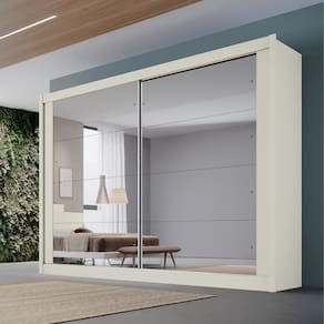 O Guarda RoupasCreta Com 2 Portas Espelhadas MDF - Móveis Europaoferece um amplo espaço interno, projetado para maximizar a organização e a funcionalidade. Equipado com roldanas que possuem sistema de amortecimento e regulagem, ele garante um fechamento suave e silencioso. As gavetas são espaçosas e apresentam puxadores em poliestireno na elegante cor champagne, além de corrediças telescópicas que asseguram um deslizar suave e duradouro. A modulação interna é altamente versátil, permitindo acomodar roupas longas com facilidade. As portas possuem um design minimalista, complementando o estilo moderno do móvel. Inclui um compartimento específico para sapatos, proporcionando uma organização eficiente.As costas parafusadas aumentam a resistência e a durabilidade do guarda roupas. Os puxadores embutidos em MDF nas portas e a profundidade ideal para cabides são detalhes que oferecem tanto praticidade quanto um acabamento sofisticado.