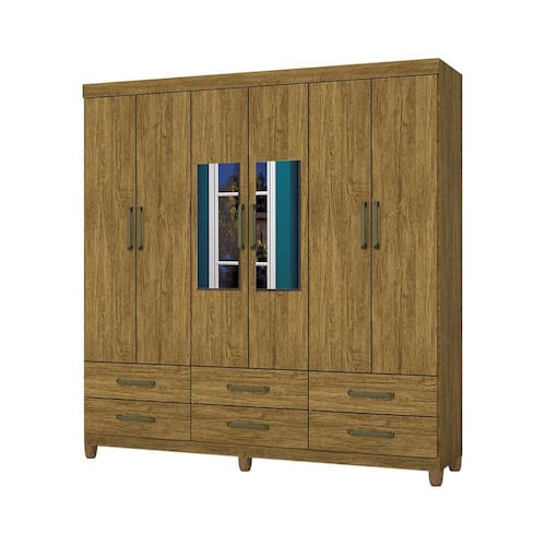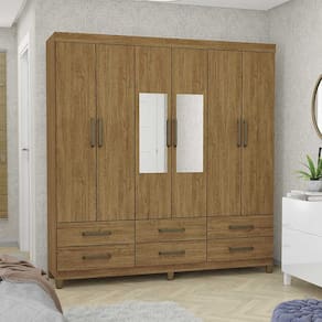 Guarda-roupa D22 6 portas 6 gavetas Com Espelho e Pés - Marrom Chocolate