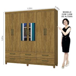 Guarda-Roupa D22 é um produto perfeito para quem possui um ambiente com espaço reduzido e ainda procura qualidade e durabilidade no mesmo móveis. Possui 1,87m de altura, 1,53m de largura e 0,40m de profundidade combinado com 6 portas, 6 gavetas, 2 prateleiras e um grande cabideiro, deixando o produto com uma ótima divisão interna. O maleiro é ideal para guardar malas, cobertores, edredons. O cabideiro além de resistente, é ideal para pendurar pares de blusas, camisas acessórios.