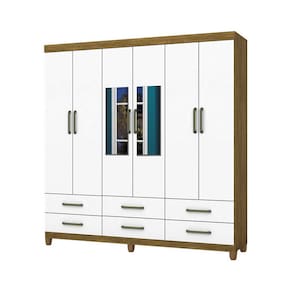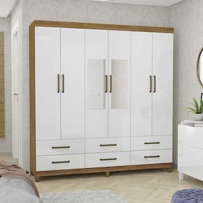Guarda-roupa D22 6 portas 6 gavetas Com Espelho e Pés - Bege