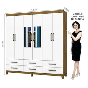 Guarda-Roupa D22 é um produto perfeito para quem possui um ambiente com espaço reduzido e ainda procura qualidade e durabilidade no mesmo móveis. Possui 1,87m de altura, 1,53m de largura e 0,40m de profundidade combinado com 6 portas, 6 gavetas, 2 prateleiras e um grande cabideiro, deixando o produto com uma ótima divisão interna. O maleiro é ideal para guardar malas, cobertores, edredons. O cabideiro além de resistente, é ideal para pendurar pares de blusas, camisas acessórios.