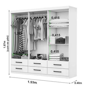 Procurando um guarda-roupa espaçoso para organizar as roupas do casal? Então o Guarda Roupa Dallas Casal 6 Portas 6 Gavetas Carioca é a escolha perfeita para você! Com um toque de estilo, este guarda-roupa oferece tanto espaço de armazenamento que você vai se perguntar se é um móvel ou um portal para o universo das roupas.
