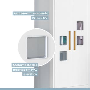 Guarda Roupa de Bebê 100% MDF 4 Portas 2 Gavetas Fly Branco. Quem disse que os melhores perfumes vêm nos menores frascos não poderia estar mais correto. O Guarda-Roupa Fly, além de compacto, é perfeito para qualquer espaço, pois suas gavetas amplas e cabideiro permitem acomodar itens de forma organizada, deixando-os sempre ao alcance. Além disso, seu visual retrô dá um toque de alegria e design ao ambiente, deixando-o muito mais aconchegante. Informações Complementares: Roupeiro com 4 portas, sendo 2 portas com detalhe em acrílico e 2 lisas e 2 gavetas. Possui 1 cabideiro, 1 calceiro, 4 prateleiras. Dobradiças metálicas de pressão. Corrediças metálicas. Acabamento interno também brilhante. Produto com ótima divisão inte Ean: 7908167231585