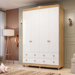 Guarda-roupa de Bebê 156,80cm 4 Portas e 4 Gavetas 100% Mdf Maya Clássico Espresso Móveis Branco Brilho/Amêndoa