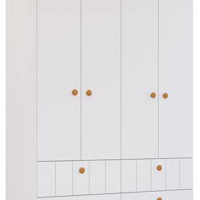 Seguindo o estilo lúdico, esse roupeiro é perfeito para quem deseja um móvel para organizar e, também, decorar. O detalhe fica por conta dos nichos laterais e as portas em formato casinha. Os puxadores e pés são torneados em madeira maciça e conferem um charme especial ao produto. Possui 4 gavetas com corrediças telescópicas que proporcionam deslizamento suave, maior abertura e melhor acesso às roupas. 4 portas com espaço interno de prateleiras e maleiros que são ideais para guardar desde objetos menores até objetos maiores como malas, pacotes de fraldas e caixas ou cestos de organização. Fabricado com matéria-prima 100% MDF, um material ecologicamente correto e de atóxico.