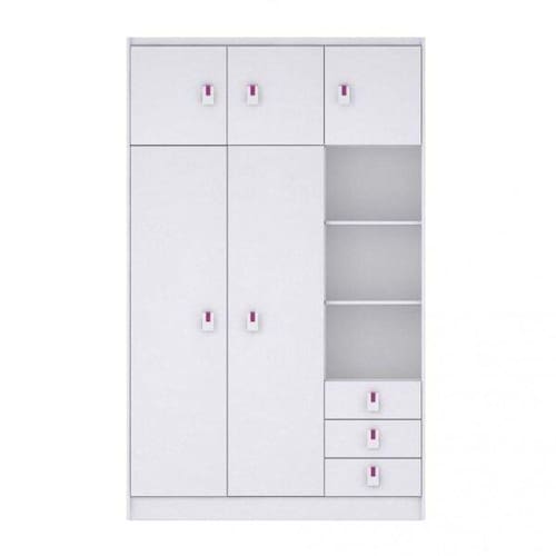 Guarda Roupa de Bebê 5 Portas 3 Gavetas Baby Móveis Percasa Flex Color Branco/Rosa/Azul. Guarda Roupa de Bebê 5 portas em MDP BP branco 15 mm (nas laterais e prateleiras), acabamento laca nas portas e frentes de gaveta. Gavetas com corrediça telescópica. Puxador na cor branca com detalhes em branco, rosa e azul. É o Guarda Roupa ideal para seu filho ou sua filha! Ean: 7898519567359