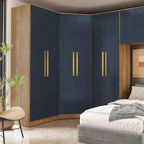 Para quem sempre sonhou com um quarto planejado, o Modulado Adapt da Kappesberg é a escolha ideal. Produzido em MDP, material de alta qualidade, o Módulo de Canto N531 é ideal para todas as composições, garantindo muito espaço, organização e ainda mais beleza. Com duas Portas e uma Divisão Interna entre Prateleiras, Gavetas e Cabideiros, ele é ideal para guardar calçados, peças de roupa dobradas e peças maiores, deixando seu espaço sempre organizado. E com Pintura de Sete Camadas, ele conta com uma combinação de cores única e muito moderna, entre o Nogueira e o Azul Profundo, combinando facilmente com todos os ambientes, além de garantir a sensação de aconchego e conforto. Os destaques ficam por conta do Puxador em MDF, e da Montagem Interna ajustável, podendo ampliar a quantidade de Gavetas ou Prateleiras, completando os diferenciais do produto e deixando você com o Quarto que sempre sonhou. Renove seu Quarto com toda a qualidade e beleza que o Modulado Adapt da Kappesberg oferece e aproveite cada momento.