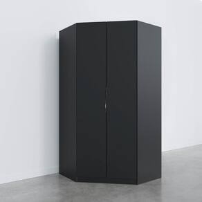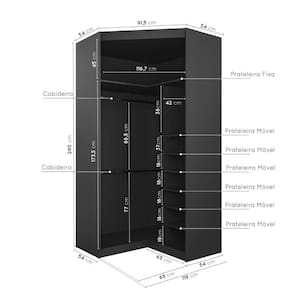 Guarda Roupa de Canto Closet Modular com 6 Prateleiras Hera CabeCasa MadeiraMadeira Preto. O Guarda Roupa Modular de Canto Obliquo Hera CabeCasa foi desenvolvido para trazer a experiência de ter seu móvel customizado de acordo com a necessidade do seu espaço. O móvel conta com 2 kits com 3 prateleiras e 3 cabideiros que podem ser selecionados e ajustados conforme a pré marcação na caixaria, evitando assim problemas para nivelamento dos mesmos. Com essa proposta, CabeCasa oferece para seus clientes a possibilidade prática e custo-benefício em oferecer um módulo que traga a experiência de um closet. O cliente pode escolher entre os sete módulos disponíveis, em diferentes variações de acabamentos, os que mais se adaptam ao seu gosto e ao seu dia a dia. Além disso, conta com design moderno que irá trazer muito mais sofisticação e aconchego para a decoração.!